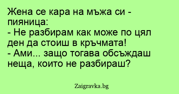 - Не разбирам как може по цял ден да стоиш в кръчмата!
