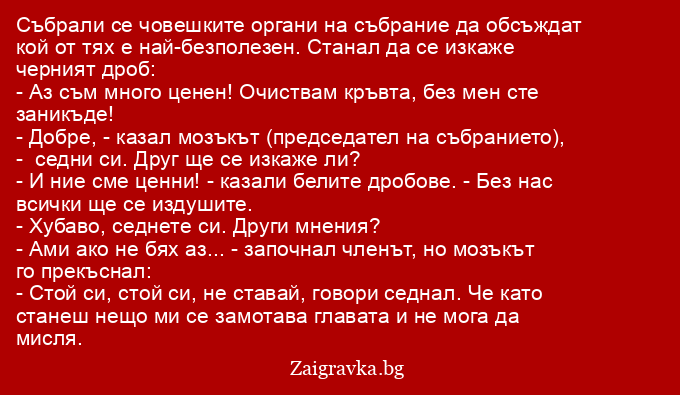 - Добре, - казал мозъкът (председател на събранието), - седни си. Друг ще се изкаже ли?