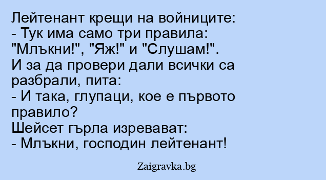 Старшината казва на войниците: