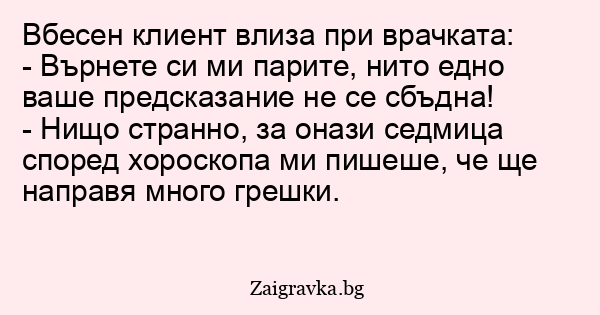 - Върнете си ми парите, нито едно ваше предсказание не се сбъдна!