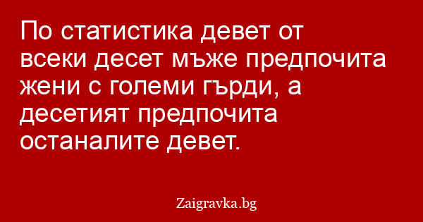 По статистика девет от всеки десет мъже предпочита жени с големи гърди, а десетият предпочита останалите девет.