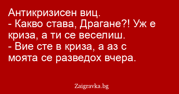- Какво става, Драгане?! Уж е криза, а ти се веселиш.