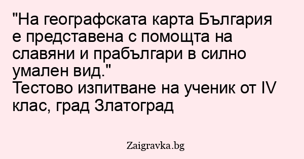 "На географската карта България е представена с помощта на славяни и прабългари в силно умален вид."