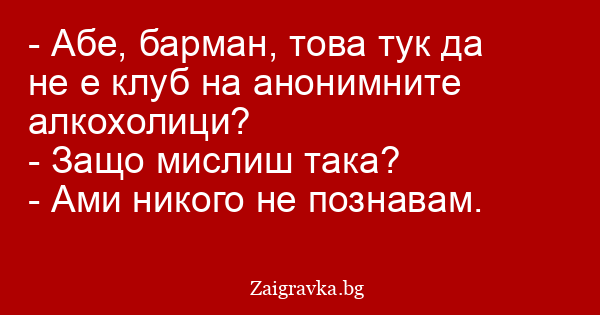 - Абе, барман, това тук да не е клуб на анонимните алкохолици?