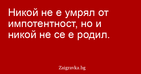Никой не е умрял от импотентност, но и никой не се е родил.