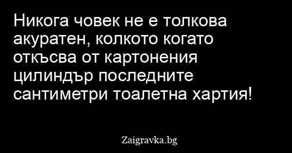 Никога човек не е толкова акуратен, колкото когато откъсва от картонения цилиндър последните сантиметри тоалетна хартия!