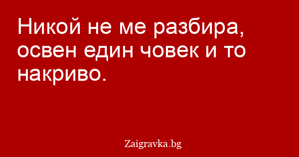 Никой не ме разбира, освен един човек и то накриво.