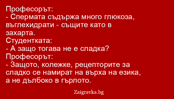 - Спермата съдържа много глюкоза, въглехидрати - същите като в захарта.