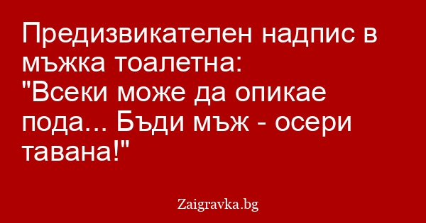 "Всеки може да опикае пода... Бъди мъж - осери тавана!"