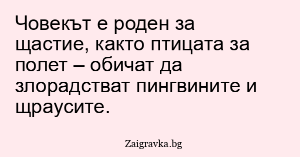 Човекът е роден за щастие, както птицата за полет – обичат да злорадстват пингвините и щраусите.