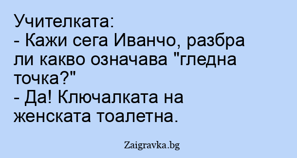 - Кажи сега Иванчо, разбра ли какво означава "гледна точка?"