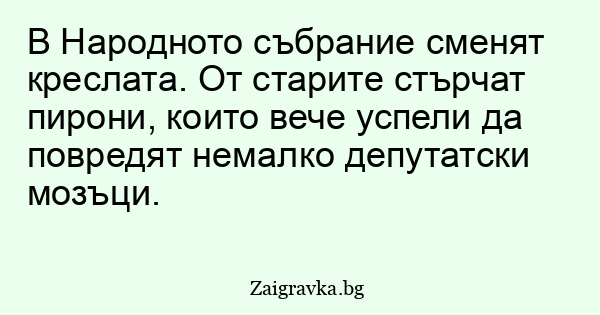 В Народното събрание сменят креслата. От старите стърчат пирони, които вече успели да повредят немалко депутатски мозъци.