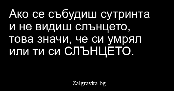 Ако се събудиш сутринта и не видиш слънцето, това значи, че си умрял или ти си СЛЪНЦЕТО.