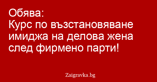 Курс по възстановяване имиджа на делова жена след фирмено парти!