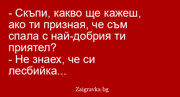 - Скъпи, какво ще кажеш, ако ти призная, че съм спала с най-добрия ти приятел?