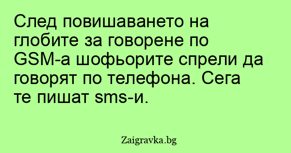 След повишаването на глобите за говорене по GSM-а шофьорите спрели да говорят по телефона. Сега те пишат sms-и.