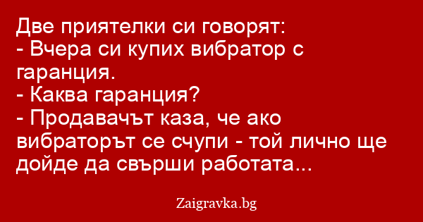 - Продавачът каза, че ако вибраторът се счупи - той лично ще дойде да свърши работата...