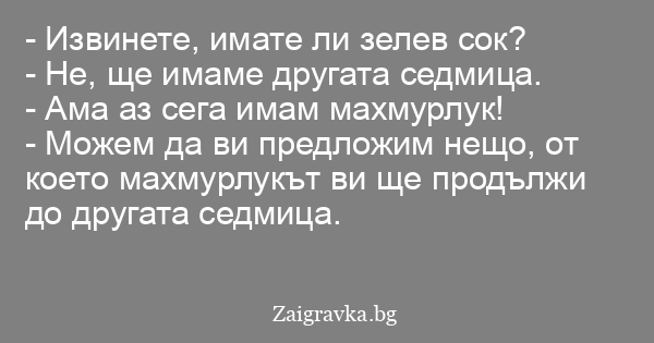 - Можем да ви предложим нещо, от което махмурлукът ви ще продължи до другата седмица.