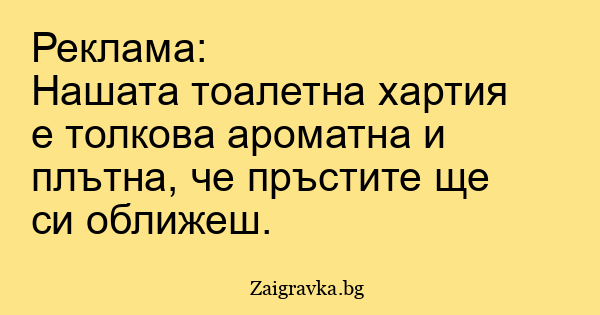 Нашата тоалетна хартия е толкова ароматна и плътна, че пръстите ще си оближеш.