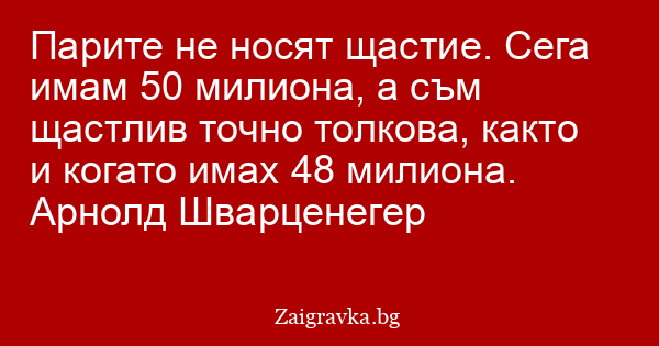Парите не носят щастие. Сега имам 50 милиона, а съм щастлив точно толкова, както и когато имах 48 милиона.