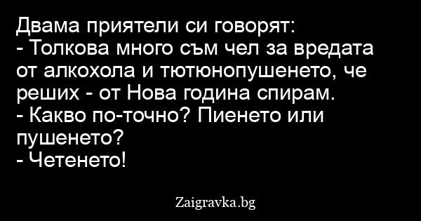 - Толкова много съм чел за вредата от алкохола и тютюнопушенето, че реших - от Нова година спирам.