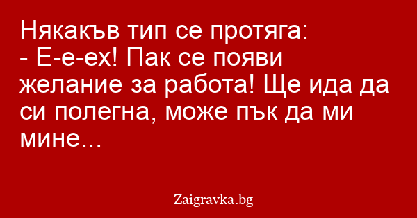 - Е-е-ех! Пак се появи желание за работа! Ще ида да си полегна, може пък да ми мине...