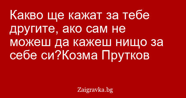 Какво ще кажат за тебе другите, ако сам не можеш да кажеш нищо за себе си?Козма Прутков