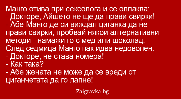 - Абе Манго де си виждал циганка да не прави свирки, пробвай някои алтернативни методи - намажи го с мед или шоколад.