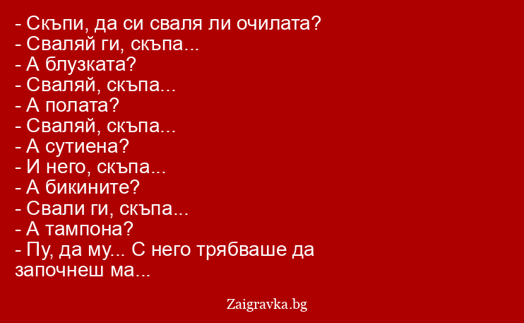 - Жена ми е станала много широка, кажи ми какво да правя?