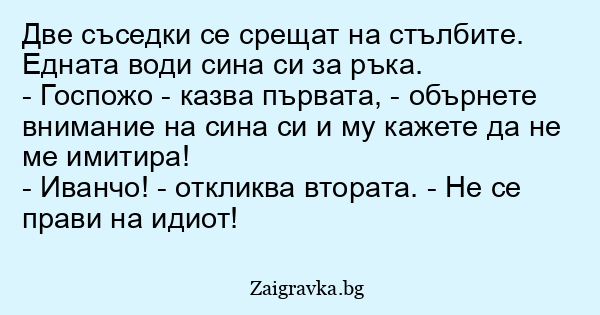 - Иванчо! - откликва втората. - Не се прави на идиот!
