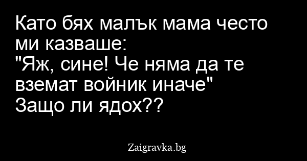 "Яж, сине! Че няма да те вземат войник иначе"