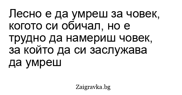 Лесно е да умреш за човек, когото си обичал, но е трудно да намериш човек, за който да си заслужава да умреш