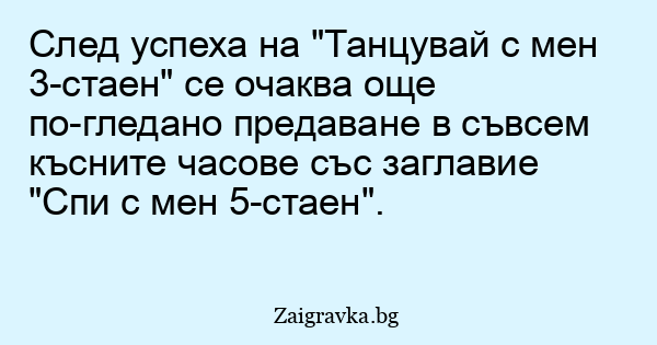 След успеха на "Танцувай с мен 3-стаен" се очаква още по-гледано предаване в съвсем късните часове със заглавие "Спи с мен 5-стаен".