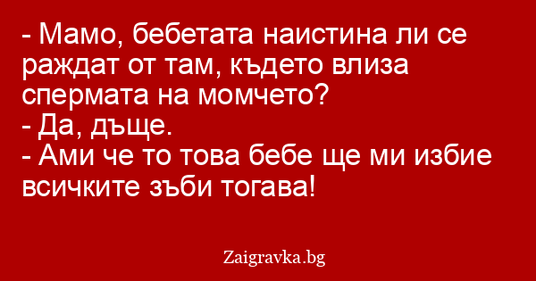 - Мамо, бебетата наистина ли се раждат от там, където влиза спермата на момчето?