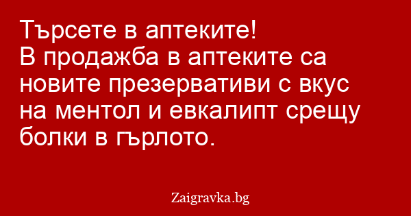 В продажба в аптеките са новите презервативи с вкус на ментол и евкалипт срещу болки в гърлото.