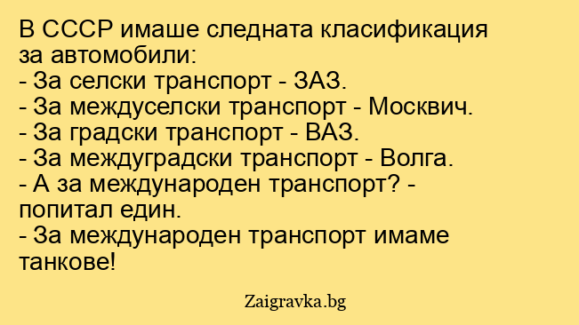В СССР имаше следната класификация за автомобили: