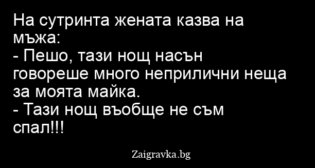 - Пешо, тази нощ насън говореше много неприлични неща за моята майка.