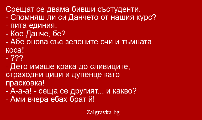 - Спомняш ли си Дaнчето от нашия курс? - пита единия.