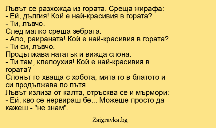 - Ало, раираната! Кой е най-красивия в гората?