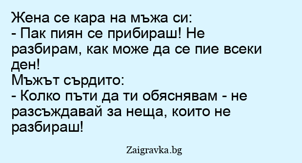 - Пак пиян се прибираш! Не разбирам, как може да се пие всеки ден!