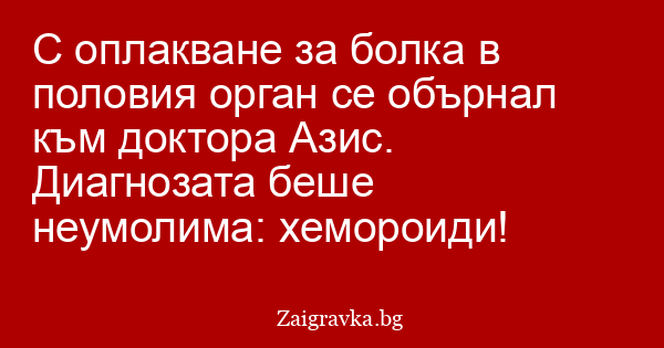 С оплакване за болка в половия орган се обърнал към доктора Азис.