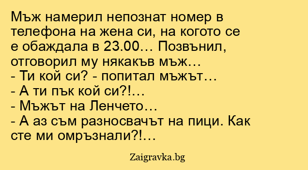- А аз съм разносвачът на пици. Как сте ми омръзнали?!…