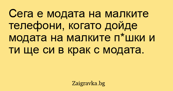 Сега е модата на малките телефони, когато дойде модата на малките п*шки и ти ще си в крак с модата.
