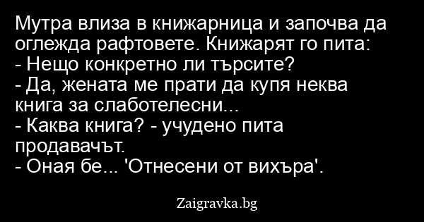 - Да, жената ме прати да купя неква книга за слаботелесни...