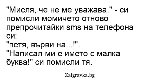 "Мисля, че не ме уважава." - си помисли момичето отново препрочитайки sms на телефона си: