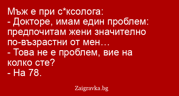 - Докторе, имам един проблем: предпочитам жени значително по-възрастни от мен…