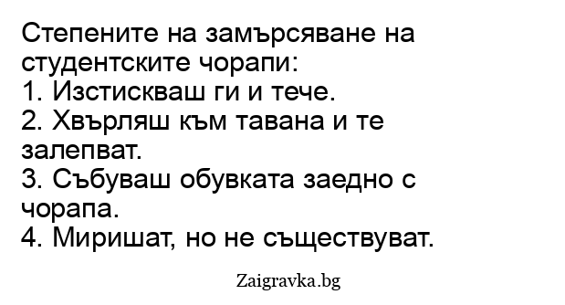 Двама студенти се напили безпаметно и на сутринта, като се събудили единият решил да избъзика другия и му казал: