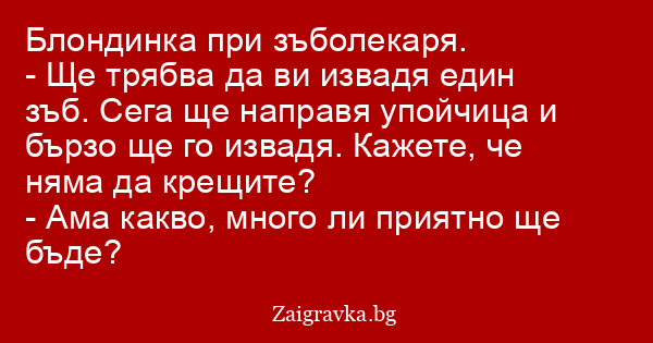 - Ще трябва да ви извадя един зъб. Сега ще направя упойчица и бързо ще го извадя. Кажете, че няма да крещите?