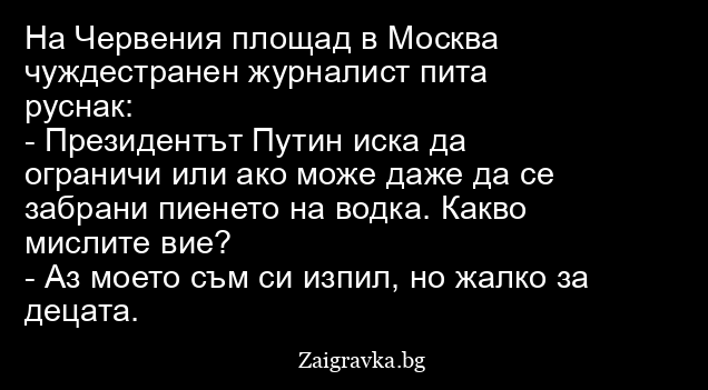 - Президентът Путин иска да ограничи или ако може даже да се забрани пиенето на водка. Какво мислите вие?