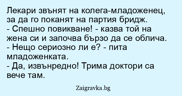 Лекари звънят на колега-младоженец, за да го поканят на партия бридж.